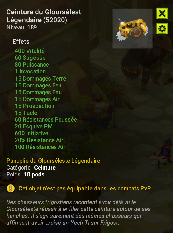 - Panoplie complète (Masque, Cape, Ceinture, Amulette, Bottes)
